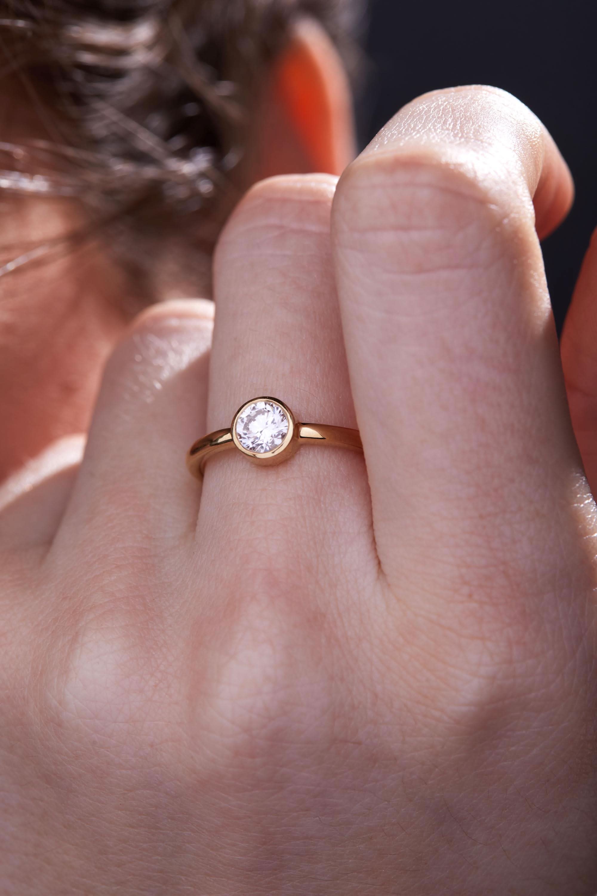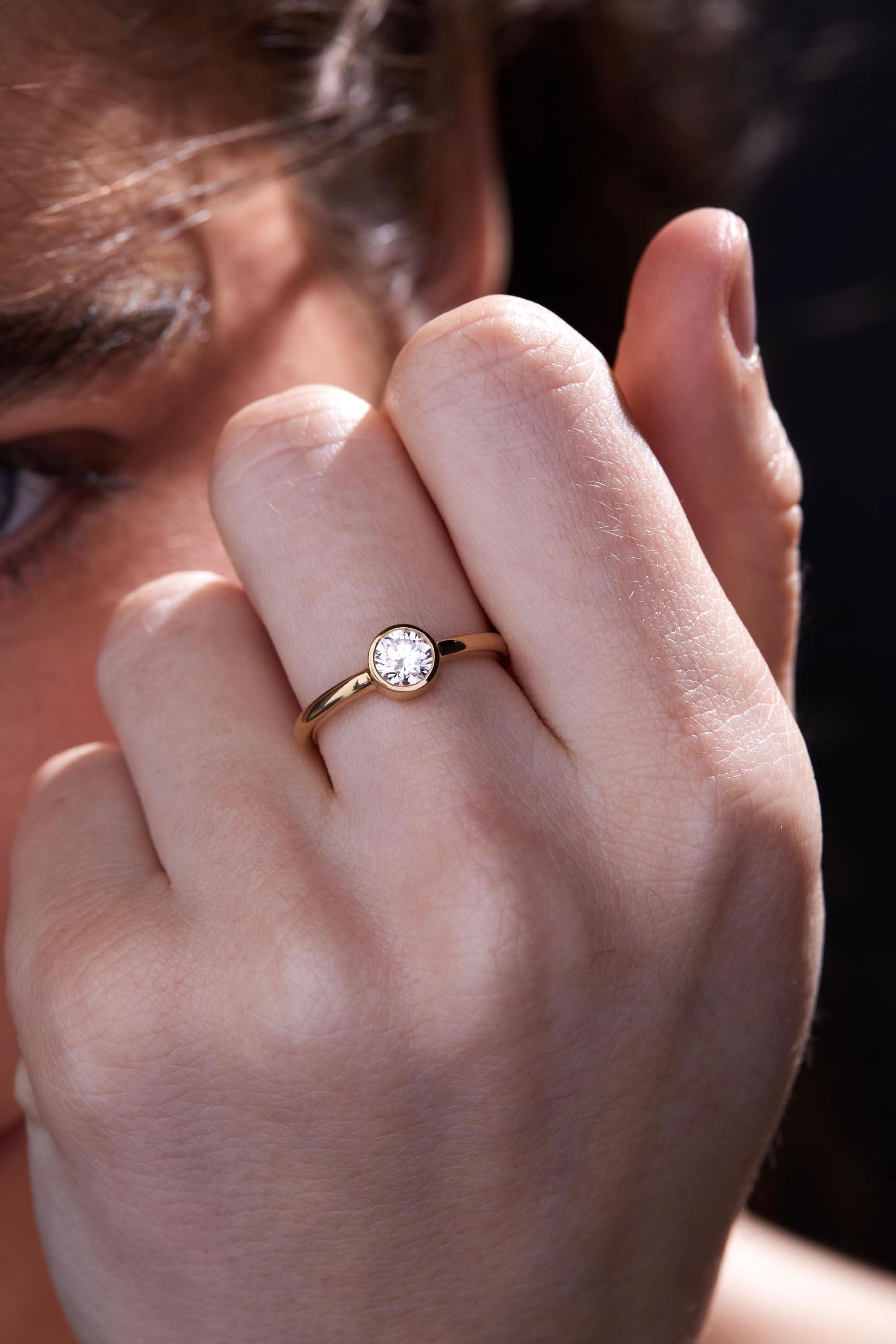 Introducing our stunning Half Carat Round Lab-Grown Diamond Bezel-Set Fashion Ring, expertly crafted in luxurious 14k Gold. This elegant ring is designed for everyday wear, adding a touch of sophistication and sparkle to any outfit.