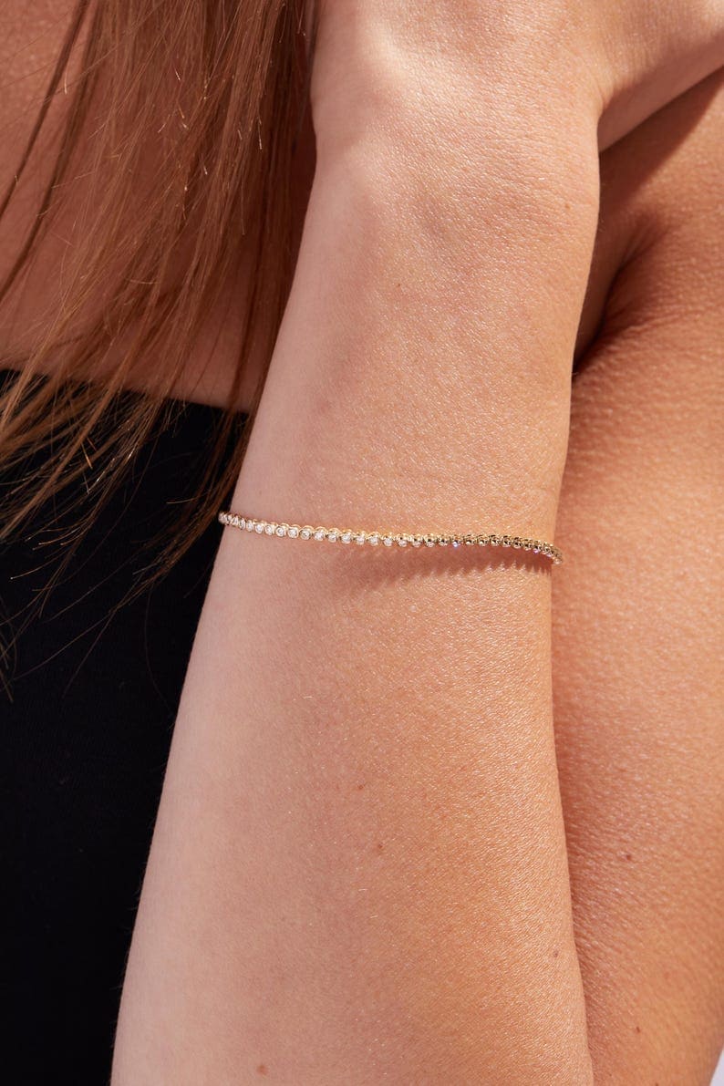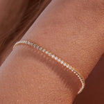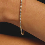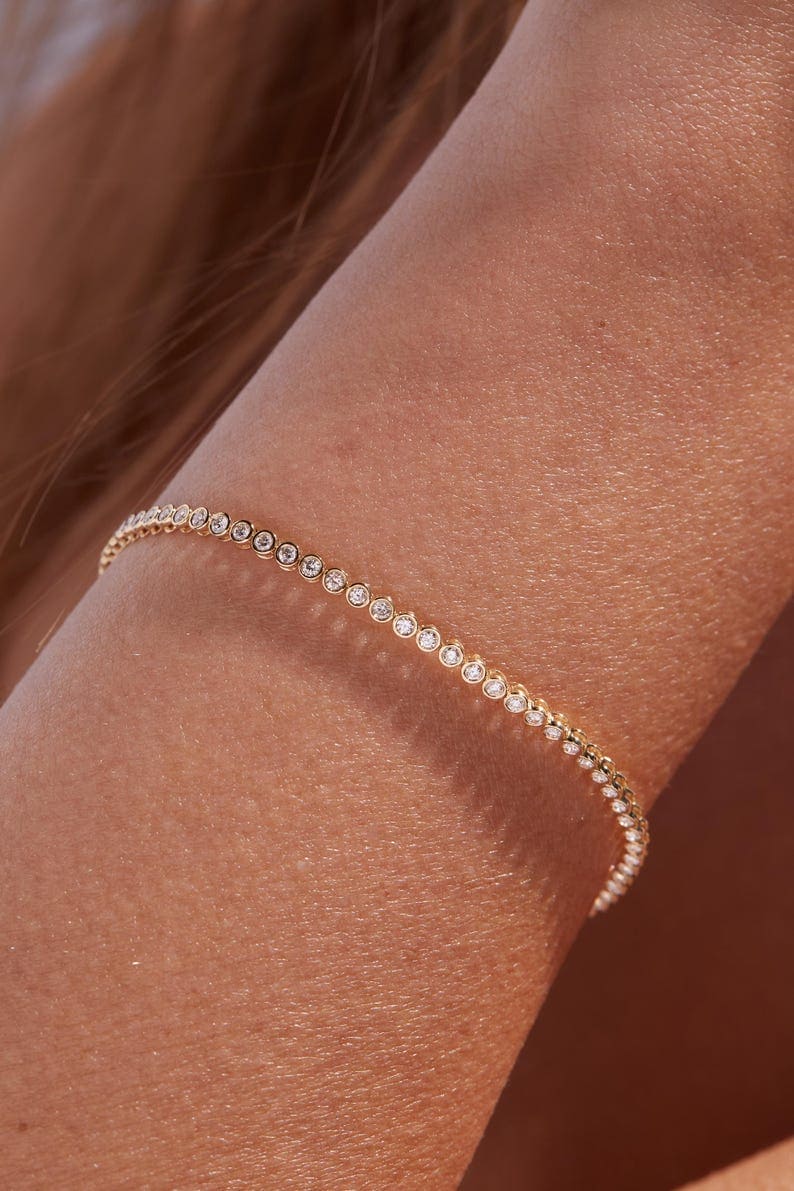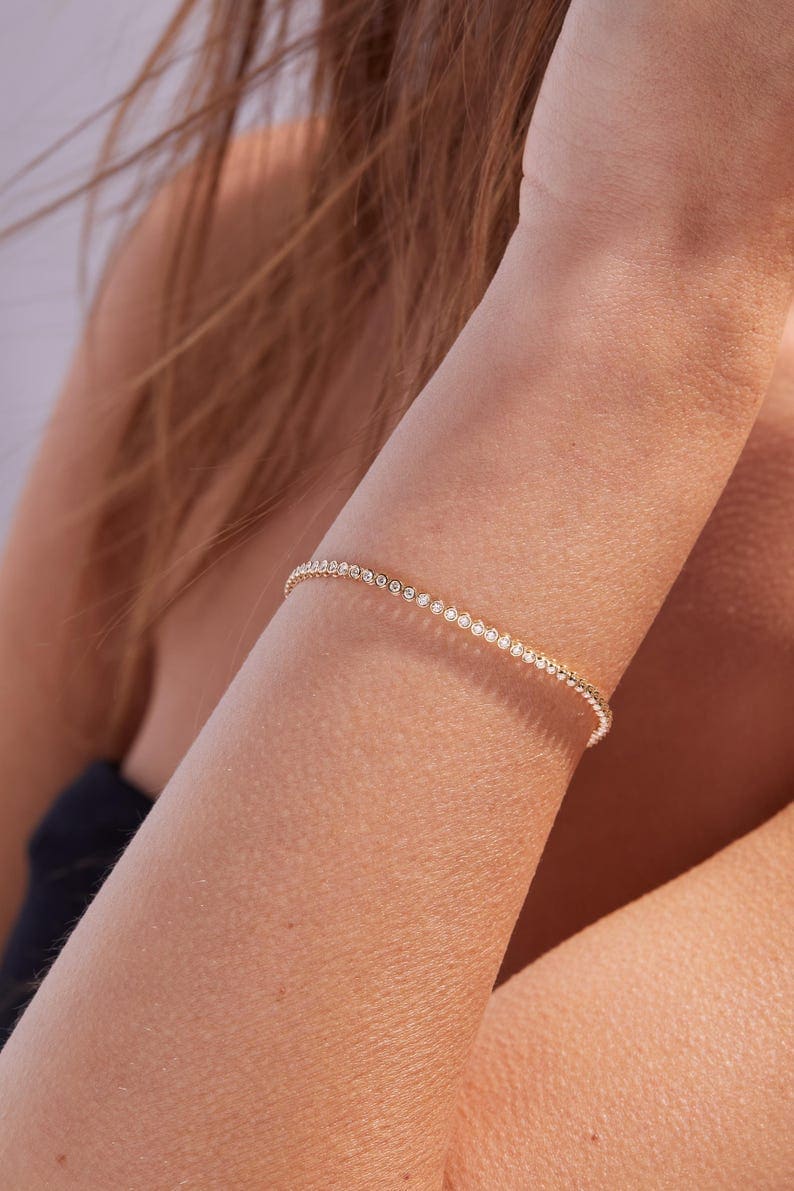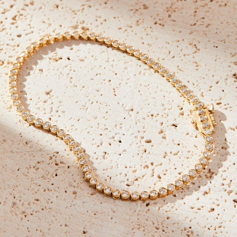 Introducing the delicate 1.30 Carat Bezel Set Round Tennis Bracelet, featuring sparkling lab-grown diamonds set in 14K Yellow Gold. This dainty and minimalist bracelet is perfect for everyday wear, combining understated elegance with modern sophistication.