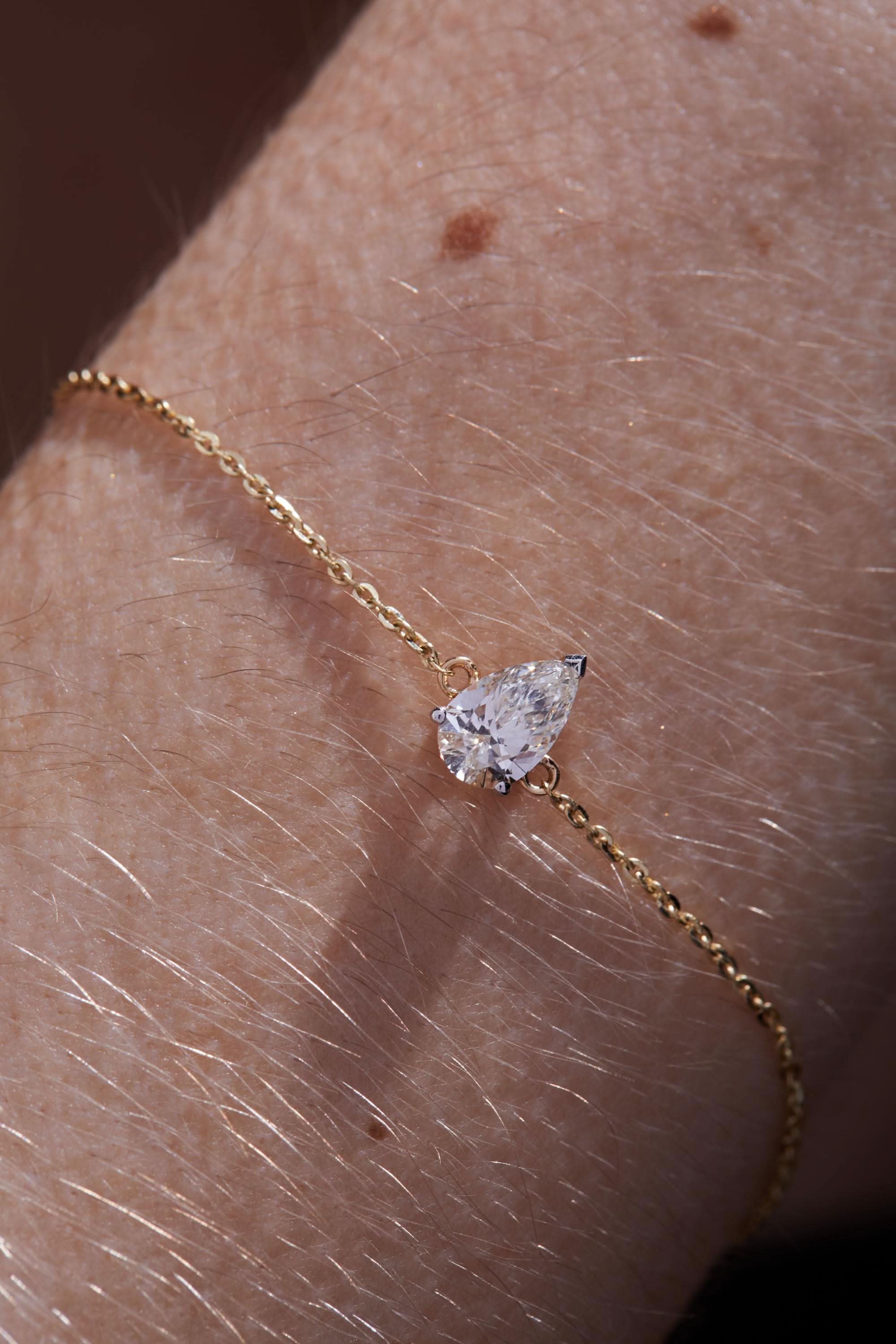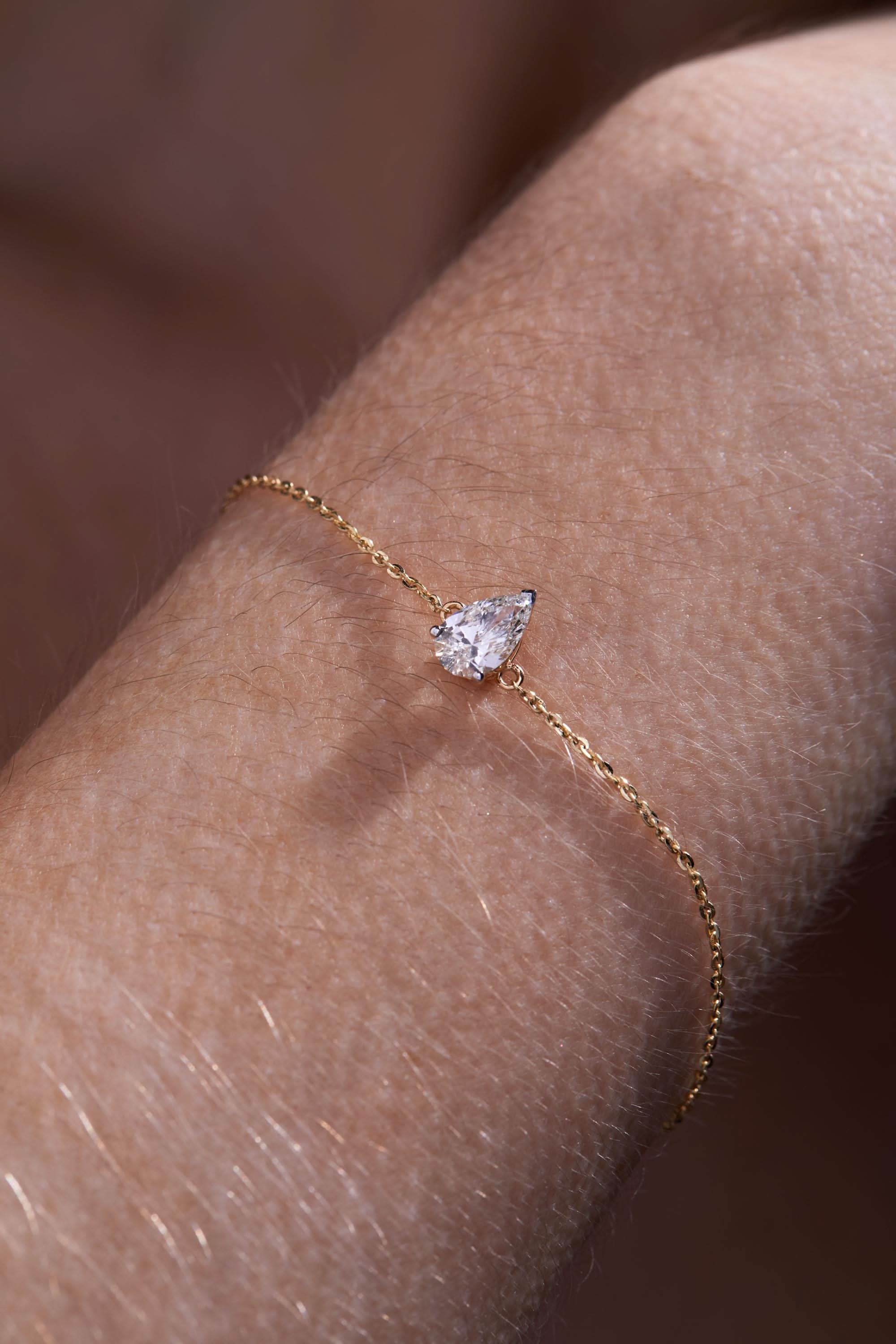 This elegant bracelet features a 1.00 carat pear-shaped lab-grown diamond set in a delicate 14K gold chain. A timeless piece that adds sophistication to any outfit.