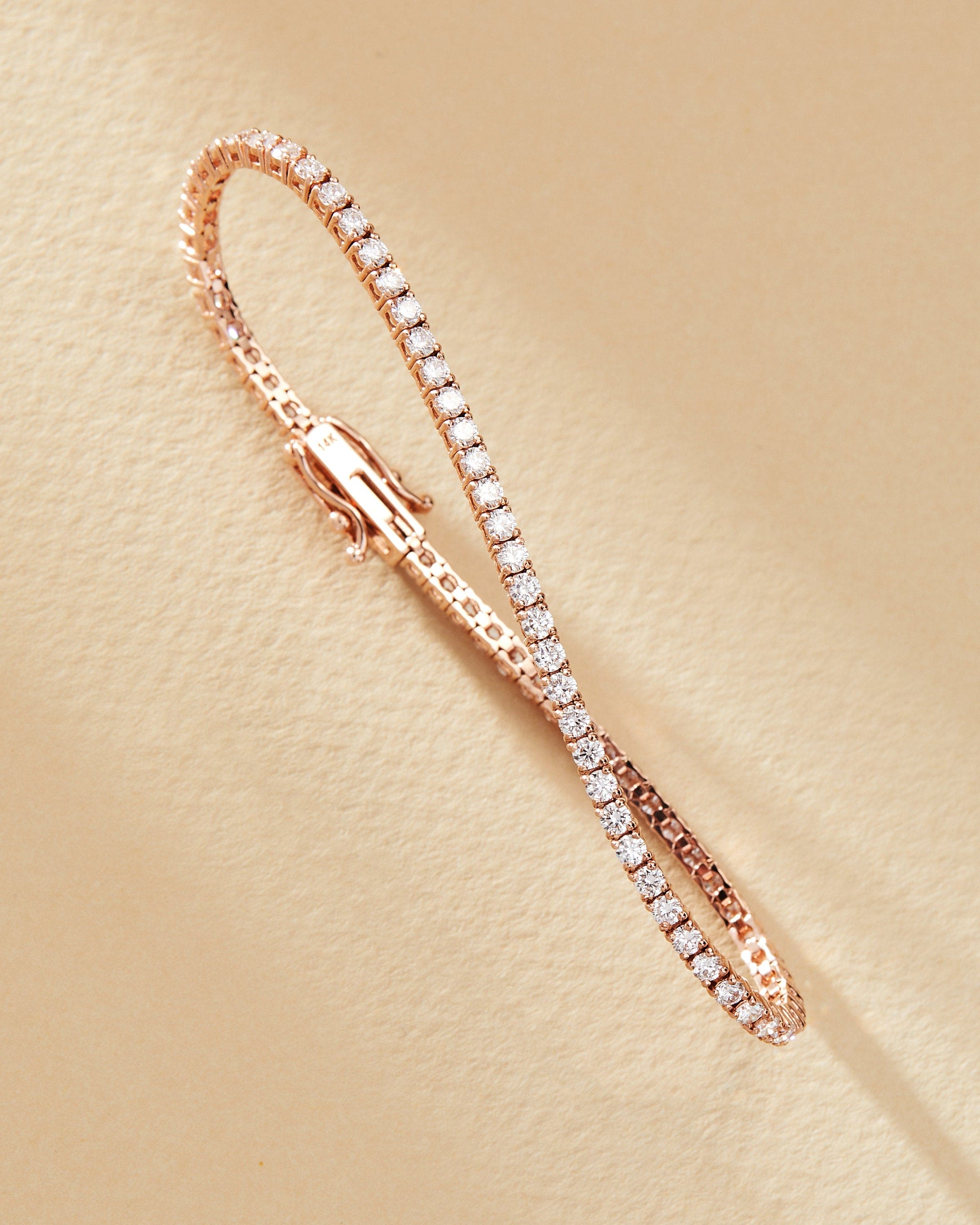 Elevate your look with this luxurious tennis bracelet, crafted in 14K rose gold and adorned with 3.00 carats of dazzling lab-grown diamonds. Perfect for adding elegance to everyday outfits or shining bright on special occasions, its timeless design ensures effortless sophistication.