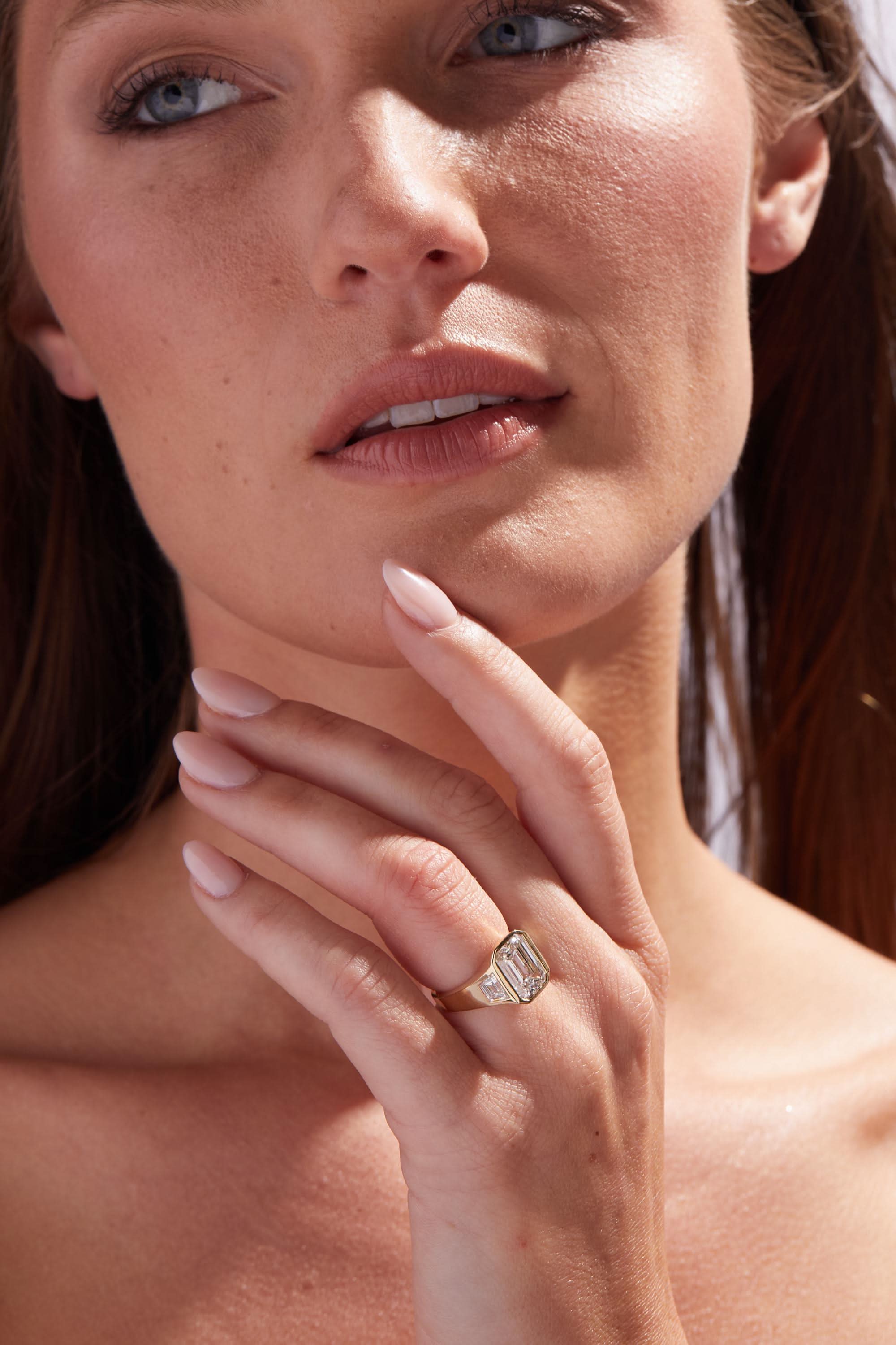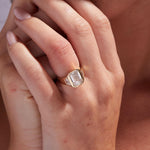 Emerald Cut Lab Grown Diamond with Trapezoid Side Stones Engagement Ri - Alora Bijou
