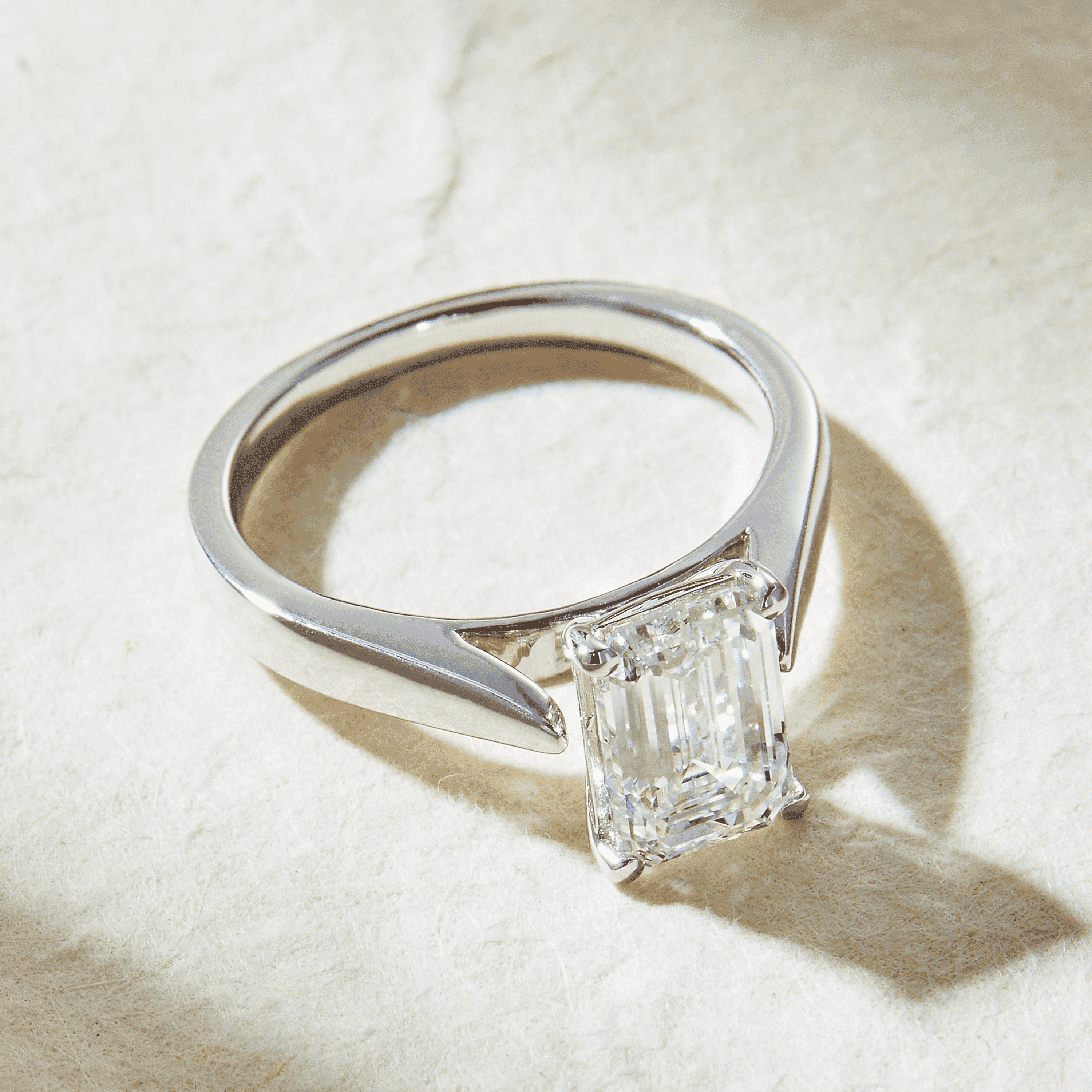 Celebrate your love with this elegant 2.00-carat emerald-cut solitaire ring. Set in 14K white gold, the F color, VVS2 clarity diamond is IGI certified, ensuring a timeless and sophisticated design perfect for any proposal.