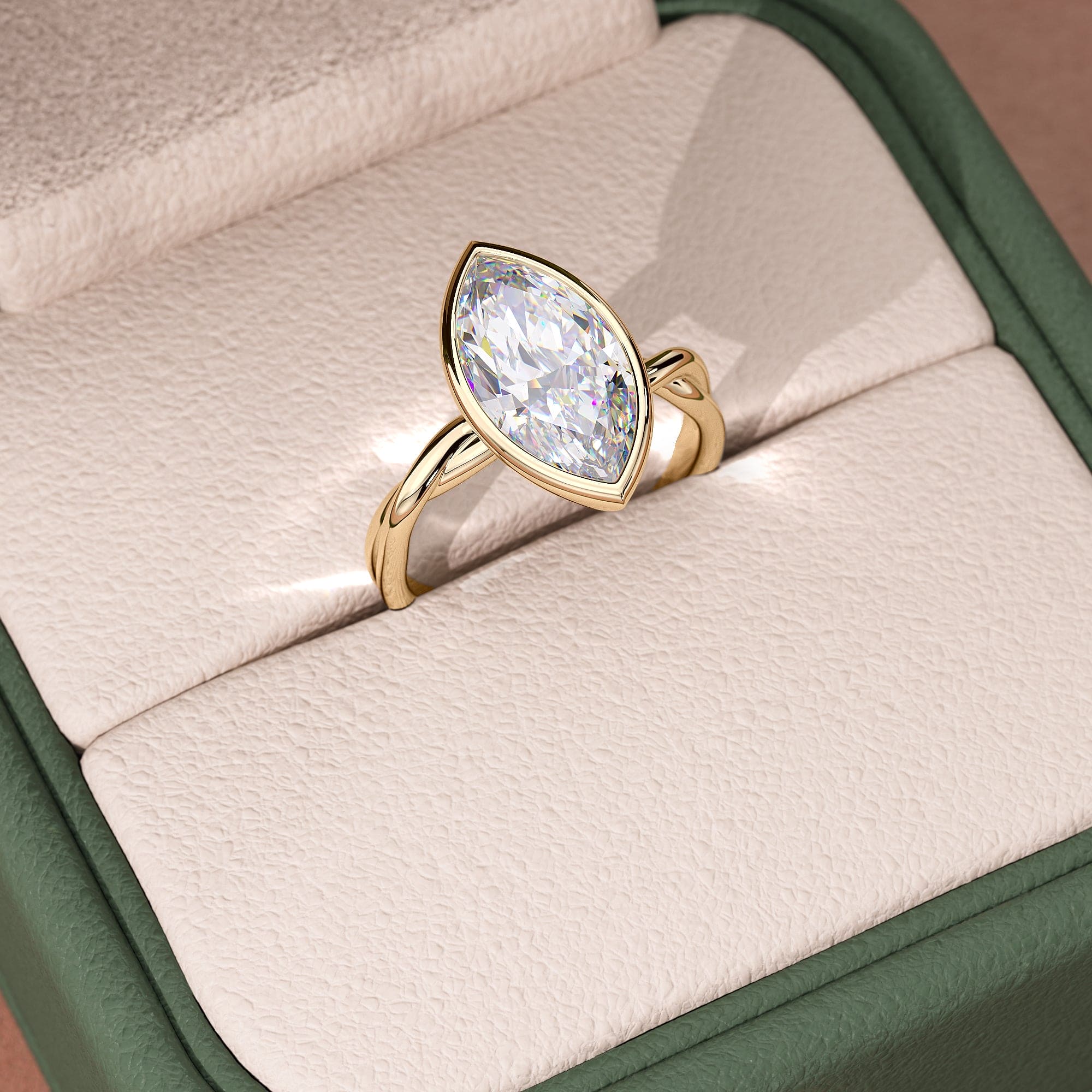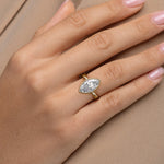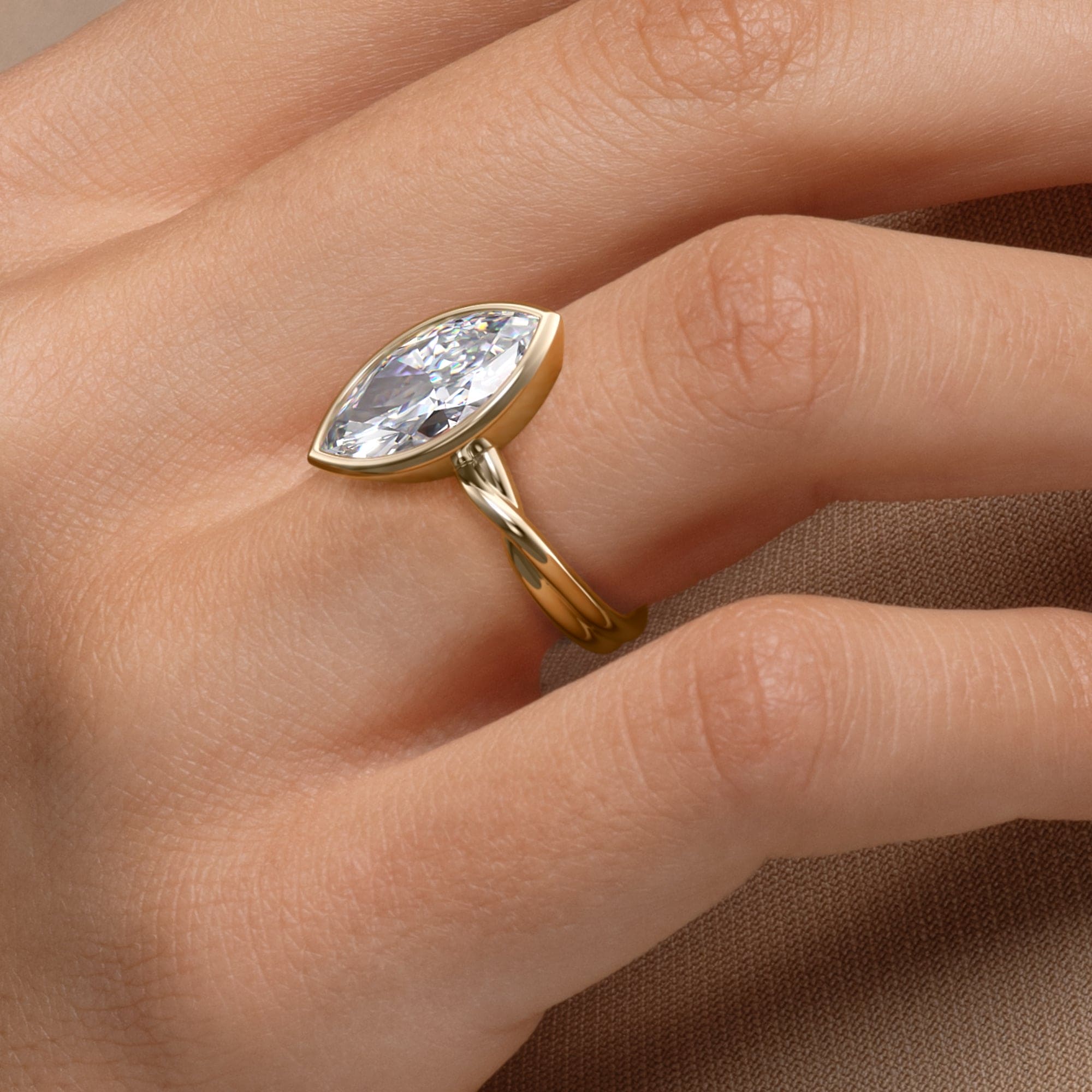 A bold yet elegant statement this bezel-set marquise cut ring is designed for the modern bride who dares to stand out.