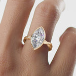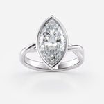 Featuring a brilliant 3.00 carat lab grown marquise diamond, this ring is set in a sleek and secure bezel setting that enhances its elongated shape and sparkle.