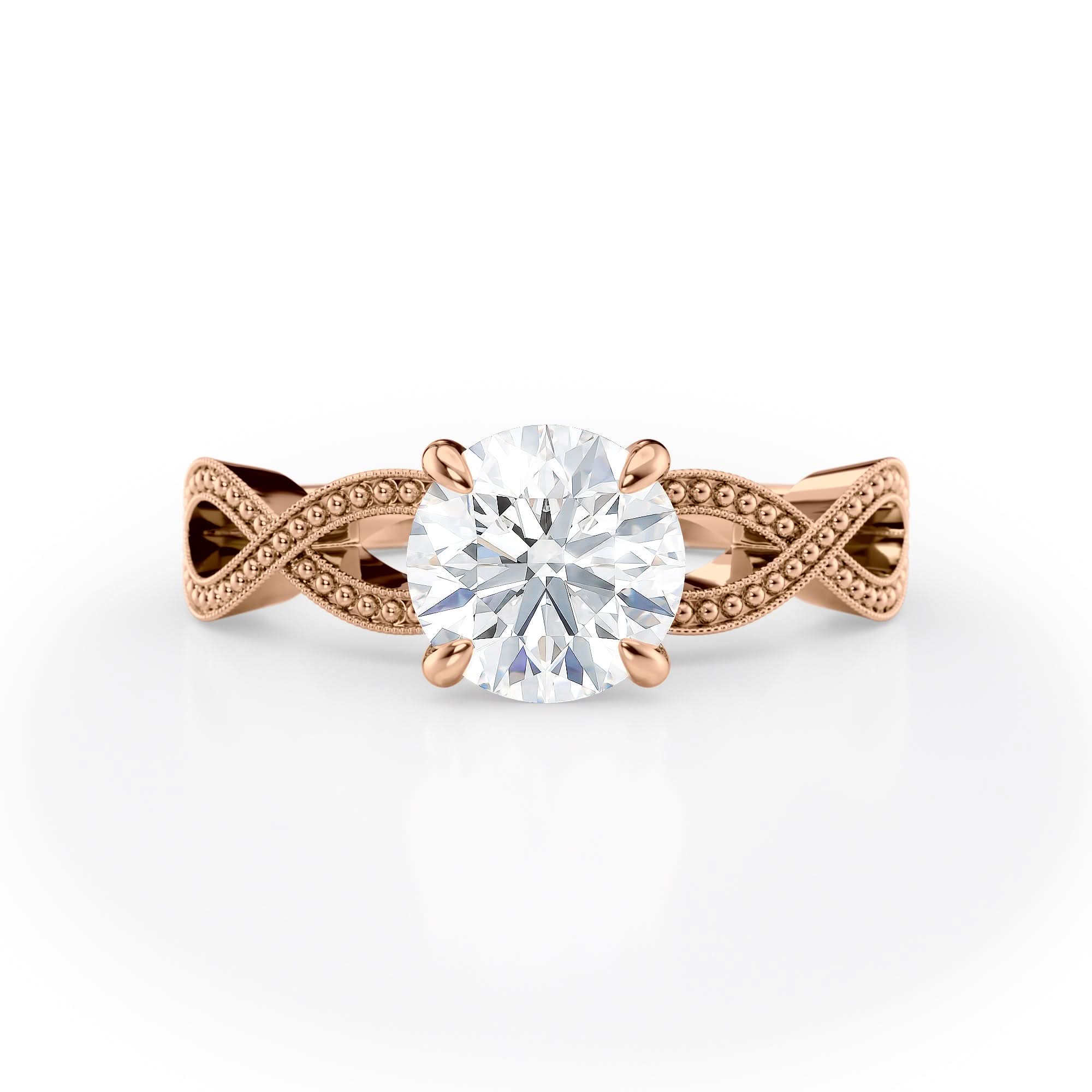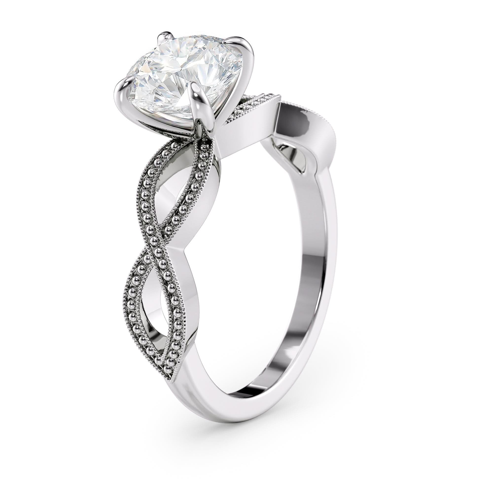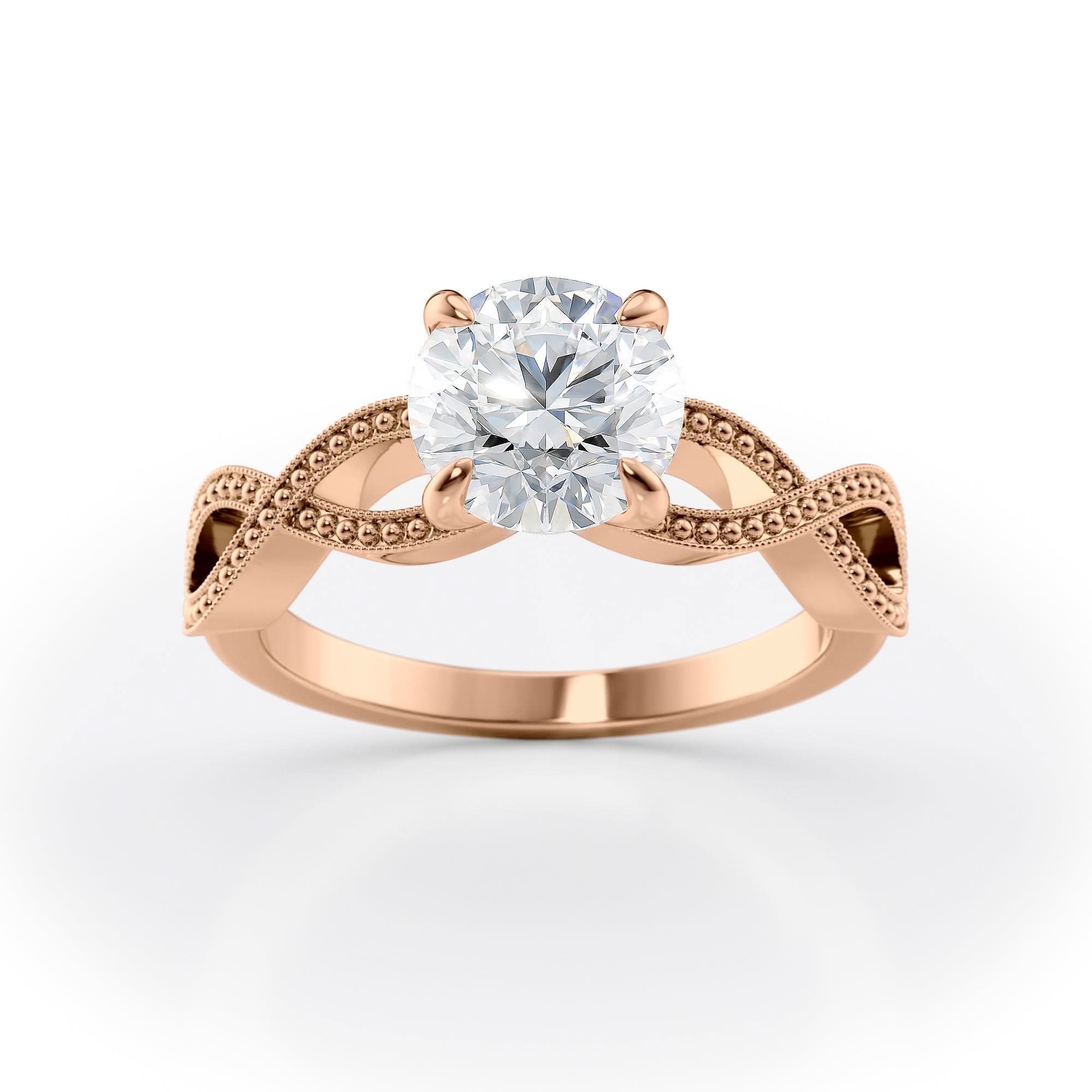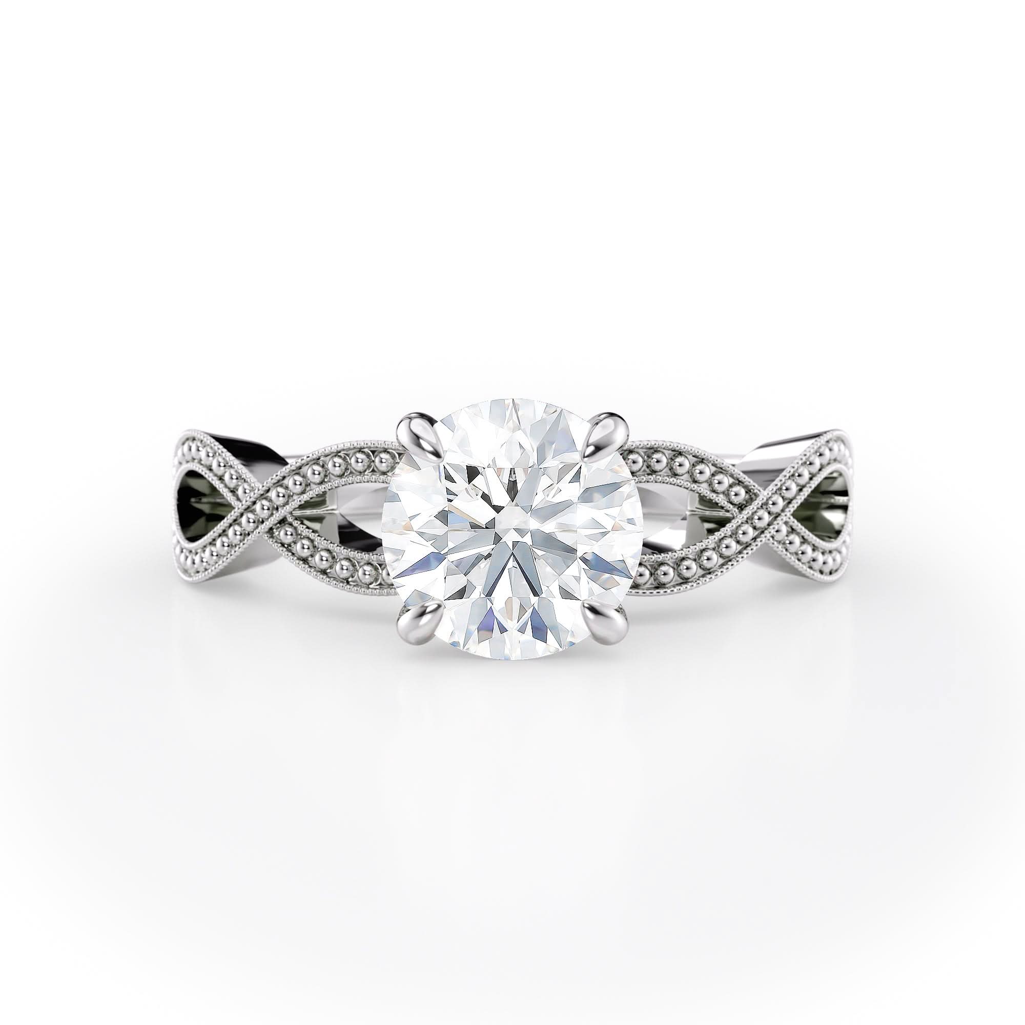Celebrate your love with this exquisite engagement ring featuring a stunning 1.50-carat round lab-grown diamond. Designed with an intricately detailed milgrain infinity band, this piece symbolizes everlasting love and commitment. The delicate 1.90mm solid 14k gold band enhances the brilliance of the center stone, creating a timeless and sophisticated look.