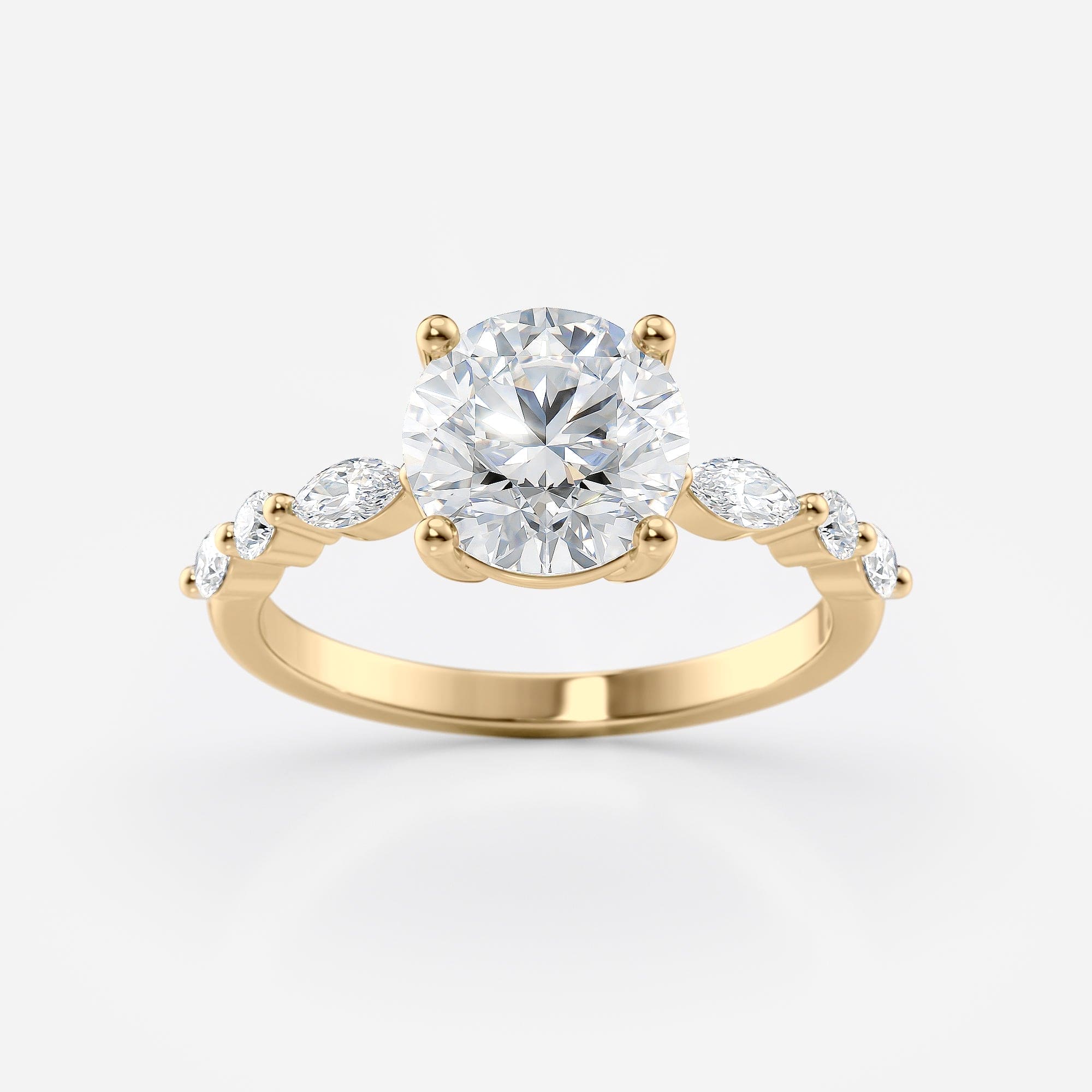 Celebrate your love with this exquisite 1.70 carat lab grown diamond engagement ring, handcrafted in 14K yellow gold (also available in rose and white gold). The dazzling round-cut center stone is beautifully complemented by 0.25 CT side diamonds, adding brilliance and elegance to every angle.