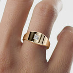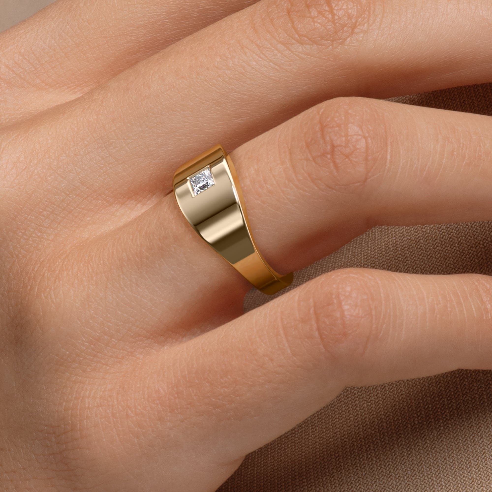 Elevate your everyday style with this bold and modern 14K solid gold Signet ring designed for women who love clean lines and timeless elegance. Featuring a 0.17 carat lab grown diamond set securely in a sleek bezel setting, this ring is a beautiful blend of sophistication and minimalism. Whether you’re looking for a unique statement piece, a modern engagement ring, or a meaningful gift, this ring makes a stunning choice. Handcrafted with precision and finished in high-polish 14K gold, it offers both beauty and durability in one elegant design.