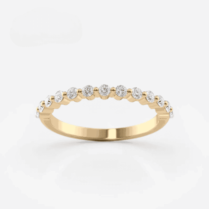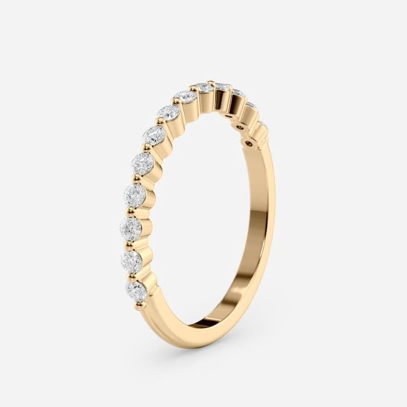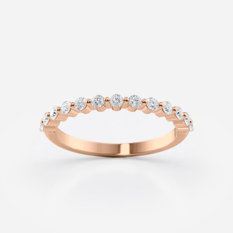 Add the perfect touch of everyday elegance with this dainty diamond stacking ring, featuring 13 round lab-grown diamonds totaling approximately 0.28 carats. Set in a scalloped design along a slim 1.80mm solid gold band, this ring is effortlessly chic—ideal for stacking, pairing with an engagement ring, or wearing solo for a subtle shimmer.