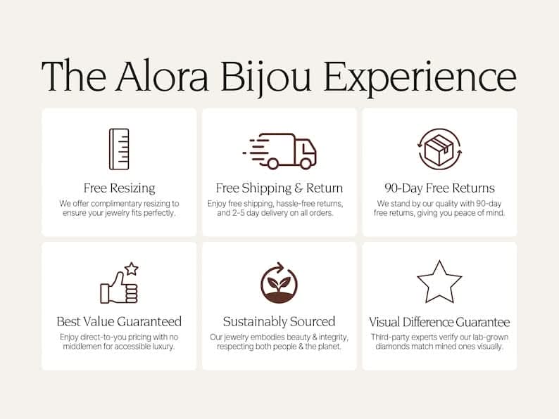 Each of our diamonds undergoes meticulous inspection by third-party jewelers, ensuring there are no discernible visual differences between mined and lab-grown diamonds. This commitment reflects our dedication to delivering exceptional quality and beauty. With Alora Bijou, luxury meets innovation seamlessly.