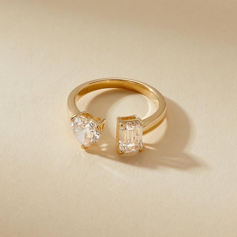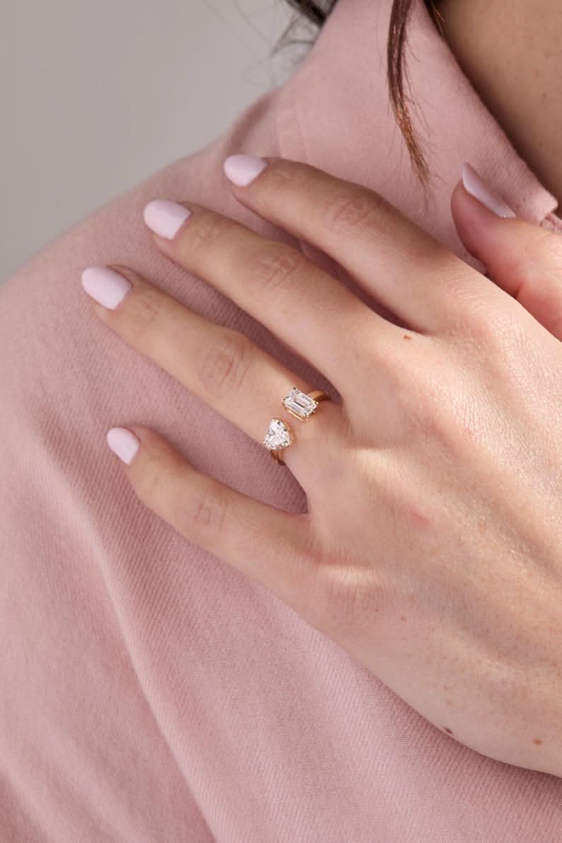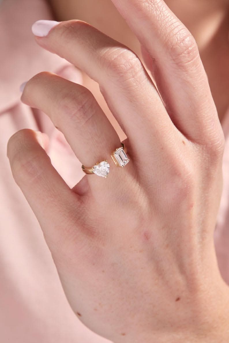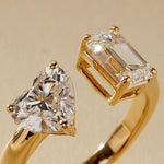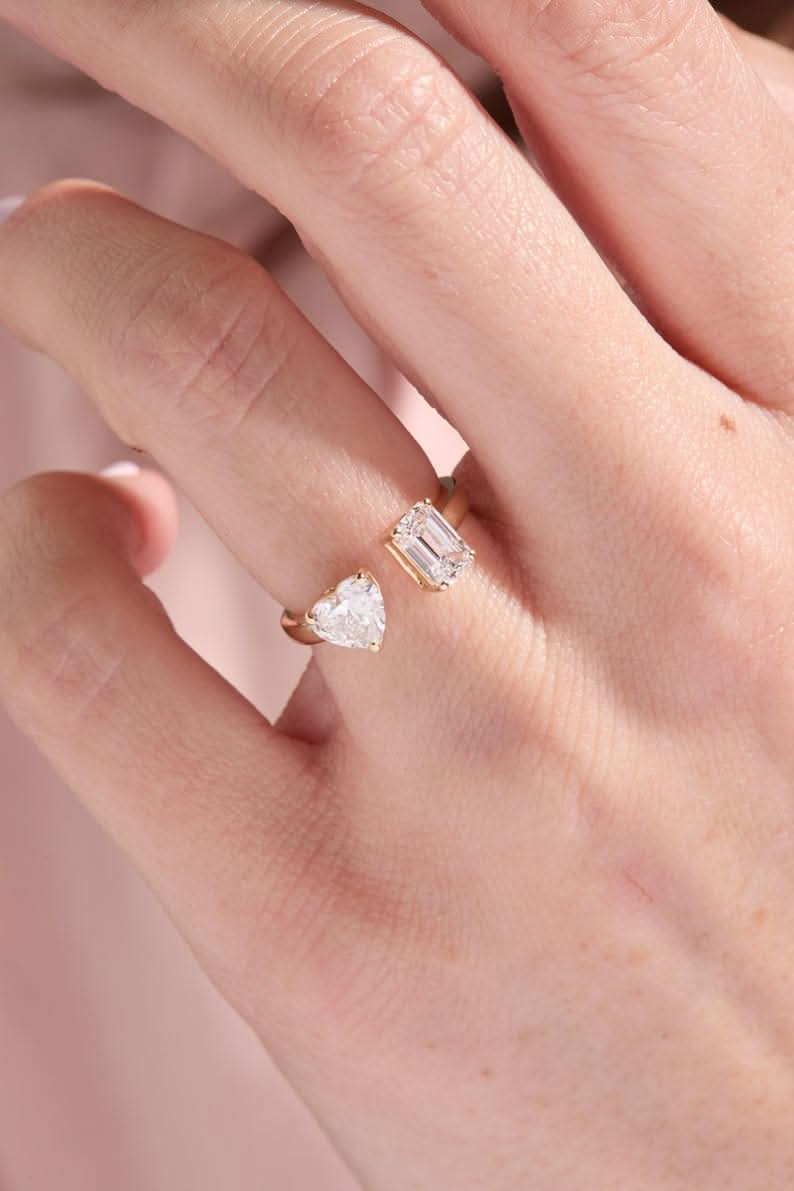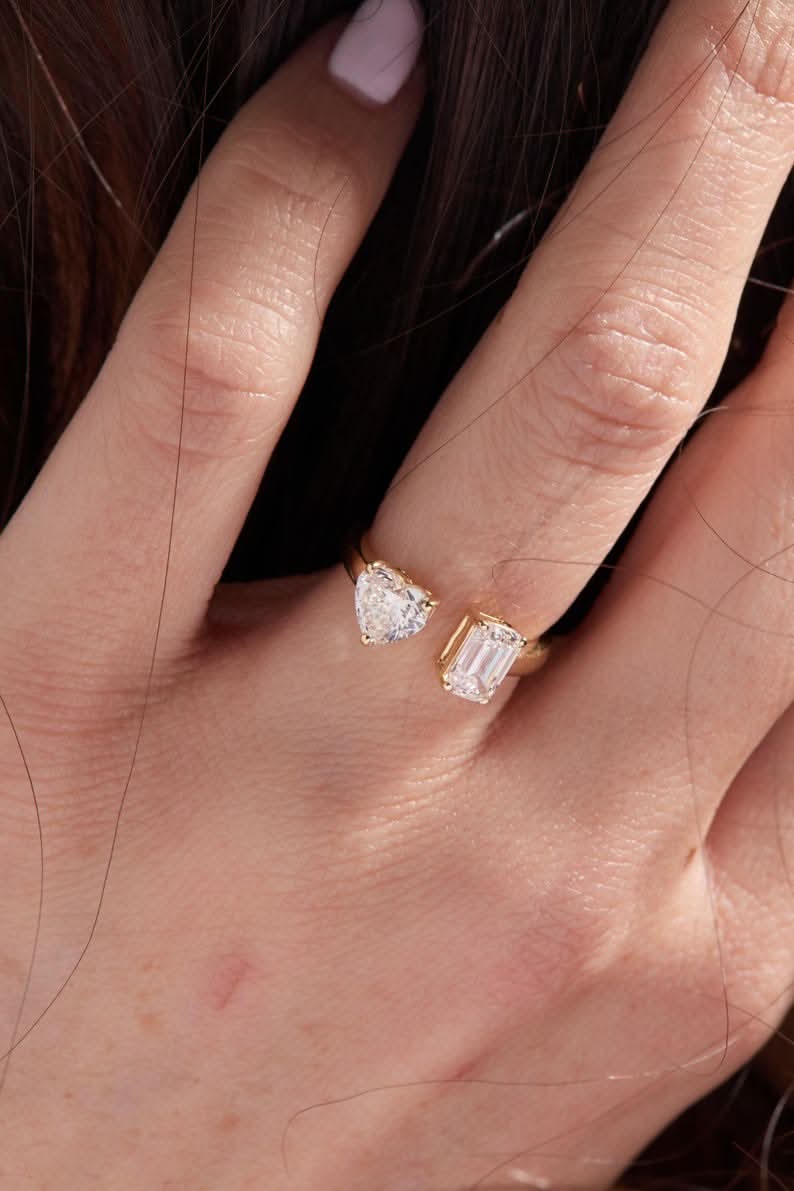 Introducing the exquisite 1.60 Carat Total Stackable Fashion Ring, featuring two stunning 0.80 carat lab-grown diamonds in heart and emerald shapes. Crafted in your choice of 14K Yellow Gold or White Gold, this ring is a modern and versatile addition to any jewelry collection. Whether worn as a stackable piece or a standalone statement, this ring exudes elegance and individuality.