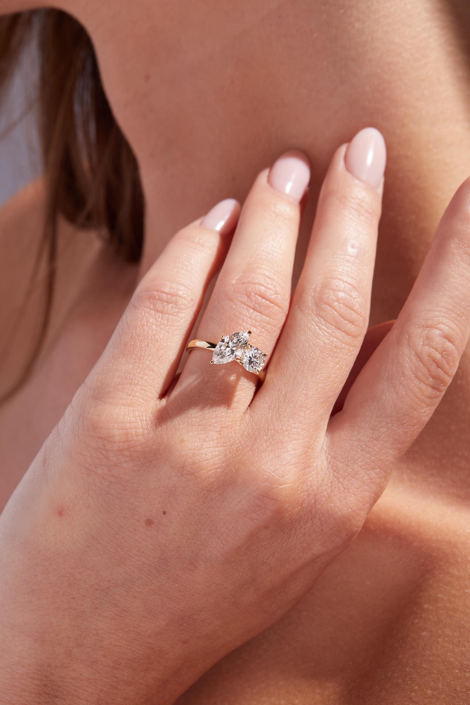Celebrate love with this meaningful Toi et Moi engagement ring. Featuring two 1.00 carat lab-grown diamonds (E color, VS1 clarity) in round and marquise cuts, this stunning piece is set in 14K yellow gold. An IGI-certified masterpiece symbolizing two souls intertwined in timeless elegance.